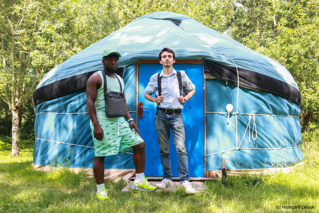 Si ce jour-là, les jeunes de Kennedy viennent pour la première fois à La Frênaie, ils n’en sont pas pour autant à leur coup d’essai en matière de fabrication de yourte. « Cette demi-journée de rencontre et d’initiation a pour but de compléter un projet de construction que l’on mène depuis un an et demi en partenariat avec Habitat Libre en Poitou. Fin juin, une yourte de huit mètres de diamètre a pris ses quartiers au pied de la tour Kennedy pour y passer l’été », explique Euryale Barthélémy, coordinatrice de la vie collective et de l’animation. Pour voir le jour, cette yourte a mobilisé le travail des habitants de la résidence, collectivement invités à participer au chantier de l’étape de la fabrication à celle du montage. Cet espace éphémère est voué à être un lieu de partage pour les habitants et les autres associations du quartier. Pour l’équipe de Kennedy, le choix de la yourte est avant tout politique, « on se pose la question de savoir si l’habitat léger qu’est la yourte peut constituer une réponse à la précarité des jeunes en termes de logement. » La visite de La Frênaie vient donc compléter cette première expérience de fabrication. Elle est organisée dans le cadre du dispositif “Vacances pour toutes et tous”. C’est Ekitour, agence de tourisme social et responsable, qui en est l’organisatrice.