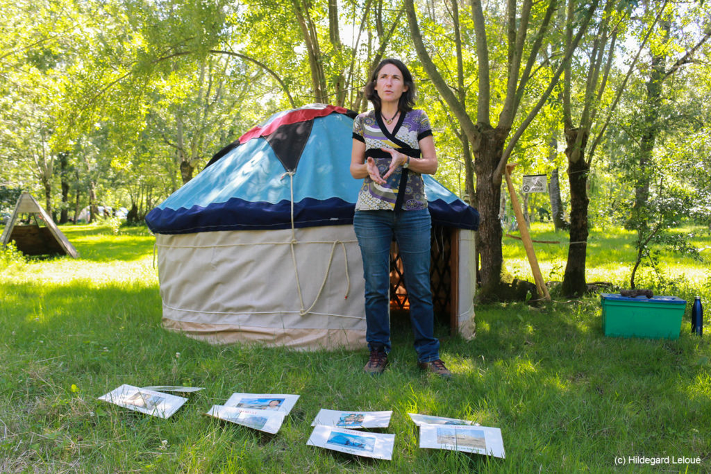 « Lorsque j’ai élaboré cette journée avec Ekitour, je supposais que les jeunes qui avaient participé au chantier de la yourte de Kennedy pourraient avoir envie d’approfondir leurs connaissances de ce type d’habitat durable. L’éco-camping et l’atelier de la Frênaie me semblaient tout indiqués pour cela, puisqu’il sont ouverts au public et regorgent d’animations ».