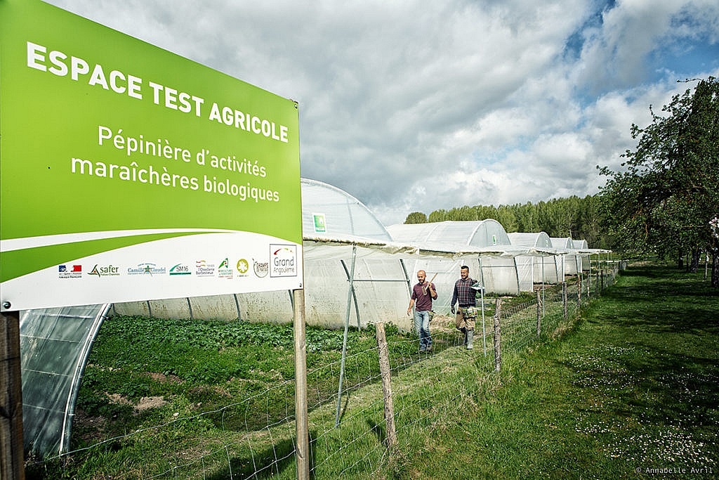Un espace test de maraîchage biologique est opérationnel depuis l’automne 2018 au centre hospitalier Camille Claudel à la Couronne, en Charente. Il est à l’initiative de Grand Angoulême et c’est l’association Champs du Partage qui gère le lieu. L’objectif : permettre à de nouveaux maraîchers de travailler leur modèle de production, en mettant à leur disposition des espaces de culture et un accompagnement. Sébastien Boulesteix et Emmanuel Meunier de Plantae & Terra, et Thomas Lefranc, alias Tom le Maraîcher, sont les premiers à y tester leur activité.