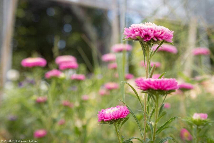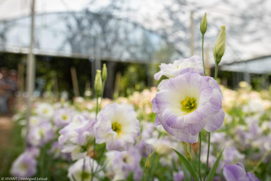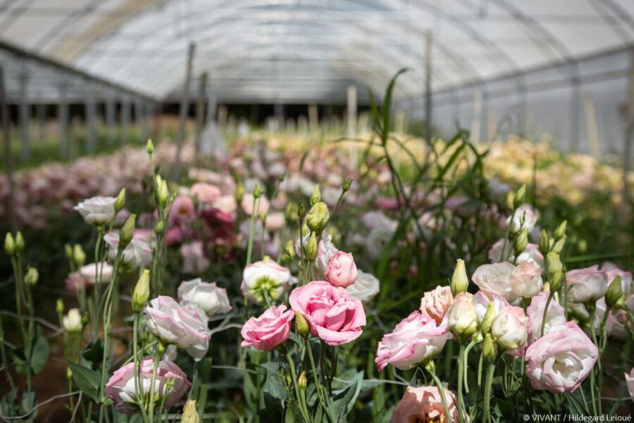 Des fleurs par milliers panachent la terre craquelée, assoiffée par un été trop sec. Sous un grand tunnel, les lisianthus chauffent sous un soleil écrasant. Incontournables des bouquets de fête, ces fleurs se portent ici à merveille, déclinées dans des tonalités de jaune, rose et blanc. Juste à côté, les œillets de poète sont bien ouverts, il y a aussi des tournesols, des marguerites, des scabieuses… « Nous cultivons une soixantaine d’espèces différentes. Notre objectif est de remettre en production de la fleur française alors que 85% viennent actuellement de l’étranger. Il reste moins de 400 exploitations horticoles de fleurs coupées dans notre pays, il y a un savoir-faire qui se perd. Nous travaillons dans un esprit ‘‘slow flower’’, qui entend appliquer aux fleurs les notions d’éthique, de proximité et d’écologie » explique Lolita Enselme, directrice de l’association Floricotte.