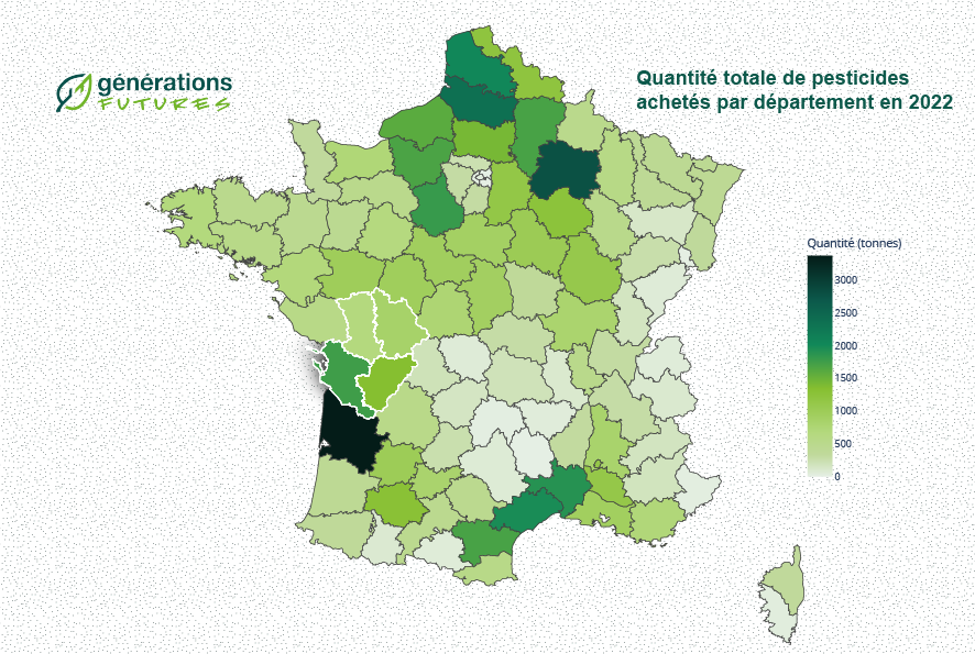 Début janvier, l’association Générations Futures, dédiée à la défense de l’environnement, a publié la carte Géophyto. Une carte interactive qui permet de visualiser l’achat de pesticides, substance par substance et département par département, entre 2015 et 2022. Un travail d’utilité publique qui permet notamment de mieux comprendre la situation en Charente, Charente-Maritime, dans la Vienne et les Deux-Sèvres. Explications avec Pauline Cervan, toxicologue chargée de mission au sein de Générations Futures.