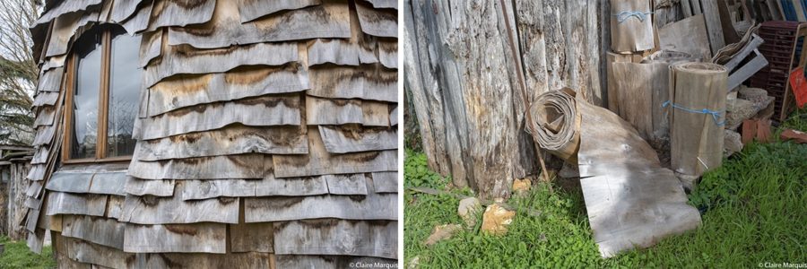 Elle pourrait faire penser à une châtaigne tombée de l’arbre à l’automne, ou à un champignon au chapeau pelé émergeant des feuilles mortes. Son créateur, Guillaume de Salvert, l’a baptisée « La Figue ». Elle mesure cinq mètres de diamètre et six mètres de haut, ce qui permet d’installer une mezzanine de 10 m² à l’intérieur. Le bardage extérieur est fait en bois de peuplier déroulé, ce matériau utilisé pour les cagettes et les boîtes de camembert. Le peuplier déroulé est cousu en une ribambelle de « tuiles » puis fixé sur l’ossature bois, elle-même faite de châtaigner, frêne, noisetier, ou chêne. « La Figue, c’est une architecture de cueillette, un bilan carbone presque nul, explique Guillaume de Salvert. On fait avec ce qui nous entoure, par exemple des perches de noisetiers récoltées dans la forêt voisine. Puis c’est une sorte de vannerie géante recouverte de son bardage elfique !» L’isolation est en laine de mouton lavée, traitée aux huiles essentielles.