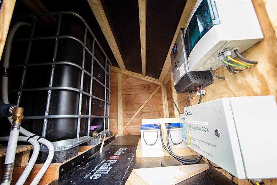 Quand elle prévoit l’installation d’une tiny house dans un village, l’association n’a pas toujours la garantie de pouvoir bénéficier des réseaux publics ou privés pour alimenter le petit habitat en eau et électricité. D’où la demande de conception de la Tiny Ô Sun, qui répond à ce besoin d’autonomie.