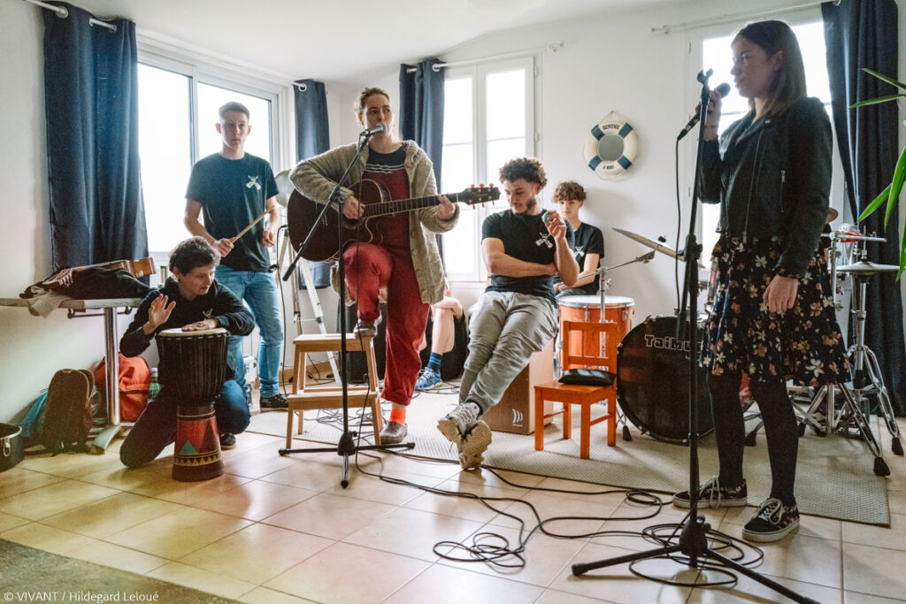 “T’as loupé un couplet frère !”. Du rap de Ninho aux balades pop de Christophe Maé, les titres s’enchaînent, pendant le concert organisé par les adolescents des Jardins de la Source. Depuis six mois, une musicienne vient les faire répéter chaque semaine, pour développer leurs compétences musicales et aboutir à une représentation dont ils puissent être fiers. D’autres activités sont proposées à ces jeunes déscolarisés le temps du séjour, pour accroître leur capacité d’écoute, de travail en collectivité et leur créativité. Chaque matinée de semaine débute ainsi par trois heures de chantier collectif. Jardinage, construction, peinture, création de panneaux de signalisation… Ces travaux manuels leur permettent de développer des savoir-être et des savoir-faire, tout en contribuant à enrichir le lieu dans lequel ils vivent. L’après-midi est ensuite dédié à la musique, l’équithérapie, le sport, ou encore le suivi individuel des projets professionnels et personnels. Autres temps forts du programme de remobilisation : une randonnée en montagne et un séjour en bateau à voile, pour se confronter à ses limites et apprendre à les surmonter grâce au collectif.