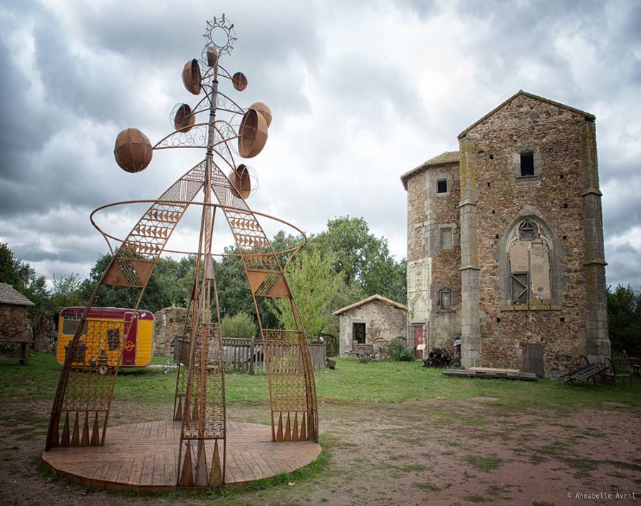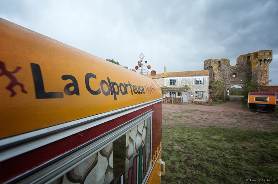 « On voulait un lieu ouvert aux habitants, mais un château médiéval c’est un lieu fortifié et fermé. Pour pousser la porte il faut être audacieux, parce que tu ne sais pas ce que tu vas trouver derrière. Alors on s’est dit que puisqu’on était des colporteurs, on se déplacerait sur le territoire, pour aller au devant de la population. Bar, cuisine, événementiel, bricolage, miellerie… tout ce qu’on fait au château on le fait aussi un itinérance avec des caravanes d’animation qu’on pose sur une place publique, dans une école, en festival… »