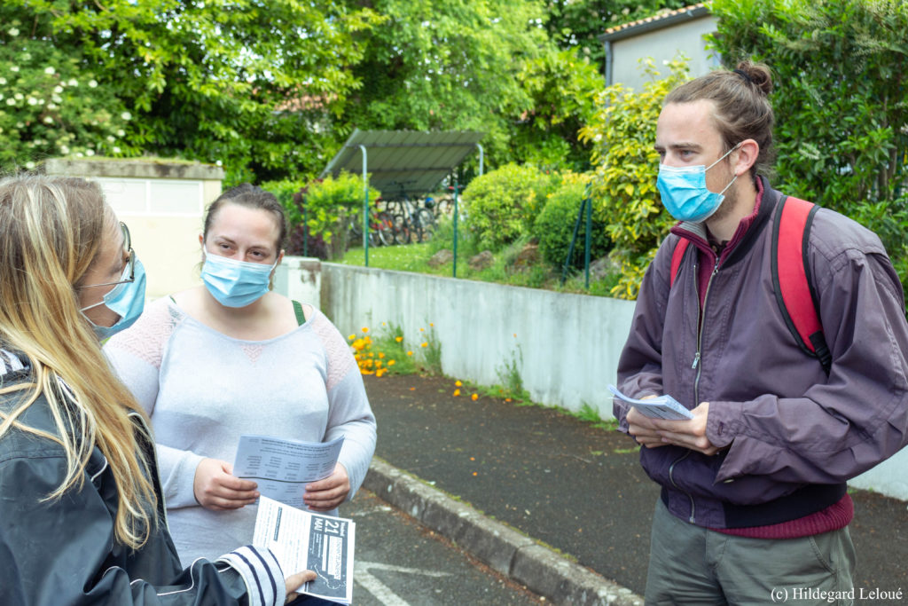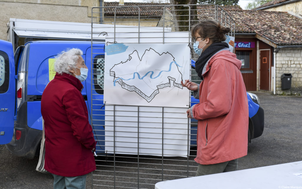 Toujours avec cette intention d’impulser la dynamique citoyenne, Alexia et Solène rencontrent les Mignaxois sur le marché, à la sortie des écoles, à l’épicerie sociale, elles mènent des entretiens radiophoniques avec en vue la réalisation de podcasts, organisent un chantier participatif pour l’aménagement de l’espace de résidence qui leur est dédié à la conciergerie du stade de la commune. Et en ce mois de juin, elles posent les premières pierres d’une grande enquête collective qui sera menée par les habitants, auprès de la population, autour de différentes thématiques : transports et déplacements, agriculture et résilience alimentaire, commerce et lien social, énergie, cadre de vie, connaissance et protection de l’environnement. Au fil des mois, va ainsi se dessiner un portrait du territoire qui révélera ses spécificités, ses enjeux, les initiatives déjà actives, et qui permettra d’identifier clairement les réponses adaptées et des pistes d’action concrètes. La fin de la résidence est prévue en février 2022.