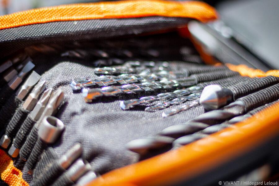 Avec leur camion bardé d’outils, les membres de l’association interviennent en itinérance à La Rochelle et son agglomération ainsi que dans l’Île de Ré. Des ateliers sont proposés dans les établissements recevant du public : centres de loisirs, établissements scolaires, résidences seniors, Ehpad, ITEP, etc. Les interventions peuvent être assurées par cycles ou de manière ponctuelle. Au lycée Dautet à La Rochelle, les Héritiers de la Récup ont notamment aidé les lycéens à réaliser leurs cotons démaquillants lavables durant leur pause méridienne, à l’occasion de la Journée de l’environnement. Au centre socio-culturel les 4 Vents à Lagord, les familles ont été invitées à réaliser des sacs à vrac. Depuis un peu plus d’un an, plus de 70 ateliers se sont déroulés, sensibilisant environ 500 personnes. Une cinquantaine de bénévoles se sont engagés au sein de l’association, dont la moitié de seniors « transmetteurs de savoirs. Nous en cherchons encore, je lance un appel aux bonnes volontés ! Il ne s’agit pas forcément d’avoir été professionnel du bâtiment, de la couture ou du jardinage mais d’avoir quelques connaissances et avant tout d’avoir l’envie de transmettre » précise la coordinatrice. Les matériaux, eux, sont récupérés auprès des grandes enseignes, dans les bennes des menuisiers, à la recyclerie La Belle Affaire à Aytré, dans la matériauthèque de La Matière à Périgny, etc. Des dons sont également faits à l’association.