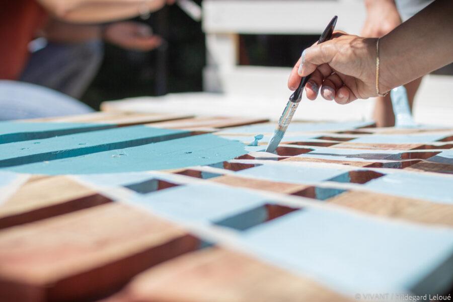 Un petit débat s’instaure entre les jeunes pour savoir quelles couleurs et quels motifs habilleront ce salon de jardin. Au final, un soleil aux nuances de bleu prendra place sur la table, les bancs seront blancs. Du moins dans un premier temps. Pinceaux et rouleaux en main, Lucas et Ethan s’adonnent à leurs tâches. Dans le calme, avec précision. Les deux garçons assurent que la peinture, c’est ce qu’ils préfèrent. Au cours de ces trois ateliers de deux heures, ils auront appris de nombreux gestes manuels, mais aussi à réfléchir avant d’agir, à imaginer comment concevoir ces meubles et objets. Entre autres vertus de ces après-midis. « C’est super pour ces jeunes d’être en relation avec des personnes de l’extérieur. Ils peuvent fixer leur attention sur une tâche à accomplir et puis il y a une valorisation de soi. Entre eux, cela crée de l’interaction et de la cohésion, s’enthousiasme Alexandra Ribeiro, monitrice-éducatrice. Ces trois séances apportent de très bonnes bases sur lesquelles nous allons continuer de travailler. Nous irons par exemple chercher des bouts de bois dans la nature pour les peindre et continuer d’investir le lieu. » À croire que les bonnes idées des Héritiers de la Récup vont continuer à germer.