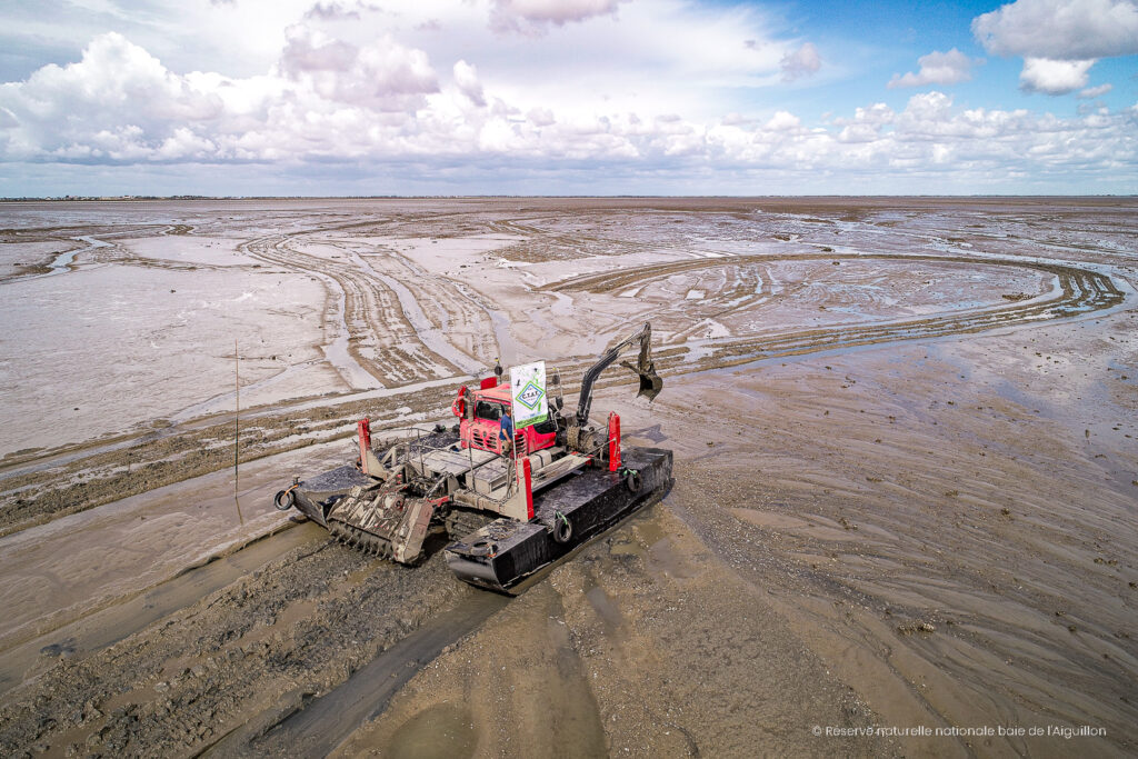 « Il s’agit cette fois de broyer 25 hectares de gisements d’huîtres sauvages pour restaurer plus de 180 hectares de vasières », précise Jean-Pierre Guéret. Un chantier « unique en Europe » par « son ampleur et ses méthodes innovantes » selon l’OFB et la LPO. Les travaux sont en tout cas atypiques, par leur nature et les contraintes du milieu. Le défi technique a été relevé par l’entreprise des Deux-Sèvres CTAT, qui a réalisé un prototype de machine permettant de broyer finement sur place les coquilles d’huîtres pour éviter une recolonisation. « La difficulté a été de créer une machine pas trop lourde, qui peut à la fois flotter et se promener sur les sédiments », relève André Tempéreau, le dirigeant de CTAT.