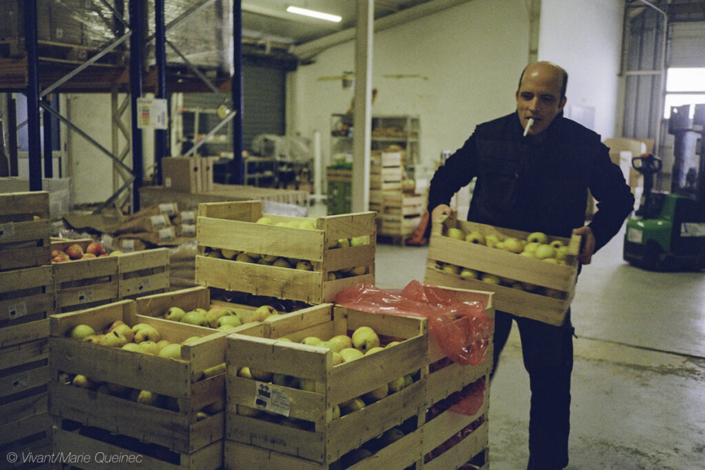 Bien connaître les produits issus des fermes du coin et répondre aux besoins des cantines, c’est la mission de Kilian, l’un des huit salarié.es que compte la structure. Pour que les poires restent accessibles, MBE livrera les petits calibres, adaptés aux enfants. Et pour les pommes de terre, Killian sait que les petites et les grosses se cuisinent différemment. Alors il s’assure de l’homogénéité des lots préparés par les producteur.ices et va jusqu’à envoyer des photos des légumes pour travailler dans un climat transparent.