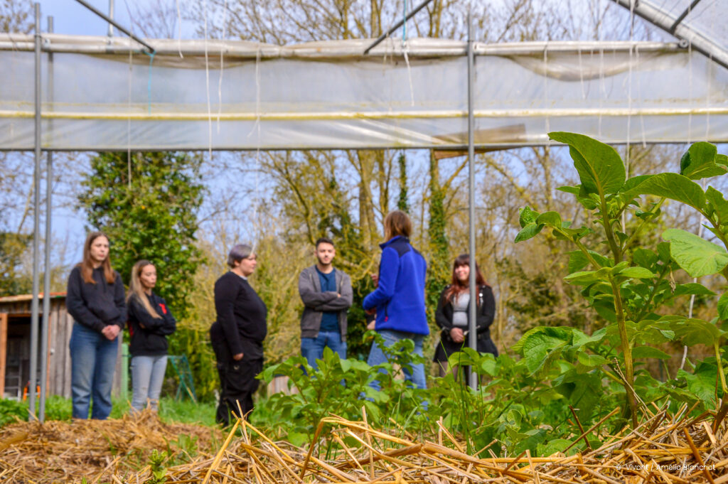 « Waouh, ça sent trop bon ! » L’émerveillement de Manuella résonne dans la serre à semis de la Super Ferme. En cette journée de printemps, six jeunes visitent cette exploitation de maraîchage sur sol vivant qui s’étend sur deux hectares au cœur de Périgny, commune riveraine de La Rochelle. Ce sont des « chimistes », du nom donné aux inscrit·es à la formation Osmose. Initié en 2023 par l’association d’éducation populaire KPA La Rochelle, en partenariat avec la Chambre des métiers et de l’artisanat de Charente-Maritime (CMA), ce cursus de six mois de janvier à juin s’adresse aux 16-25 ans sans emploi ni formation. Sa particularité ? Être une « formation-action » inédite où les jeunes apprennent à gérer une entreprise coopérative en lien avec la transition écologique et sociale, pour « apprendre les métiers de demain ». Les chimistes proposent par exemple des prestations de services à des entreprises locales (Société Générale, Léa Nature, Dufour, etc.), participent à des ateliers, font des stages, des visites sur le terrain, acquièrent des compétences au CFA (Centre de formation des apprentis) de la CMA. Du concret, comme ce jour-là à la Super Ferme.