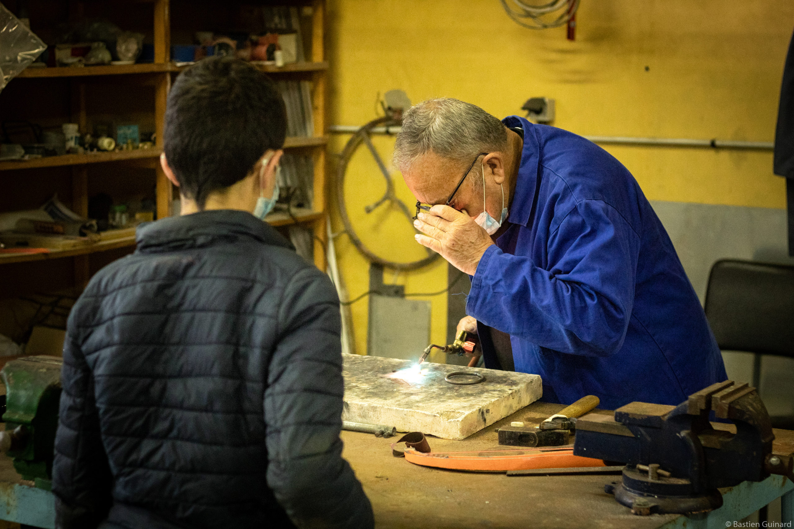 « Les garçons se débrouillent très bien, de futurs grands couturiers, peut-être hein ? » sourit Christine en observant Johan à la machine à coudre. Marc Lamarche, quand il était président, accordait beaucoup d’importance au devenir des adolescent.es venu.es dans les ateliers. « Tous les ans au mois de juin, je décrochais mon téléphone et j’appelais les familles dont les enfants étaient passés par ici deux ans ou trois ans auparavant, pour savoir ce qu’ils étaient devenus. On ne tient pas à former des gens de métier mais certains enfants découvrent leur voie et ils poursuivent en apprentissage. Ça leur ouvre les yeux, ça leur ouvre des portes. Un jour une maman me donnait des nouvelles de son gamin, et elle me dit : au moins il a appris à bricoler, à tel point que maintenant quand quelque chose ne va pas dans la maison, ce n’est pas le papa que j’appelle, c’est mon fils. Il se débrouille très bien et lui au moins il ne rouspète pas ! »