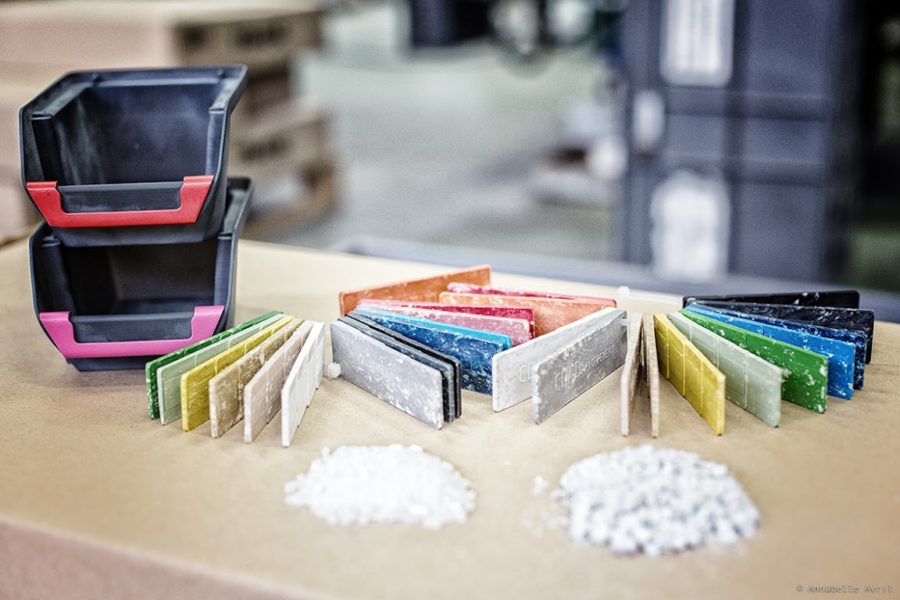 Alors quels débouchés pour ce plastique hybride ? Le modèle économique n’est pas de vendre de la matière mais des produits finis. CDA développement prototype des bacs de rangement pour les vis, ce qui a du sens dans un secteur industriel comme Châtellerault. “Nous designons des bacs éco-conçus, précise Thibaut Descomps. Ils peuvent s’emboîter, ce qui fait que pour les transporter on n’a pas besoin d’un camion mais d’un carton.” L’équipe travaille aussi à la création de cintres, cohérent pour une association de réinsertion dont une partie de l’activité consiste à vendre des vêtements de deuxième main. La résistance mécanique de ce plastique innovant? Pour Jean-Marc Neveu la question ne se pose pas. “Comme tous les plastiques il est cassable, mais contrairement aux autres il est remplaçable à vie.” Les porteurs du projet Plaxtil imaginent déjà un système où l’on viendrait rapporter ses cintres et bacs de vis cassés, et cette matière première serait rebroyée pour créer de nouveaux produits.