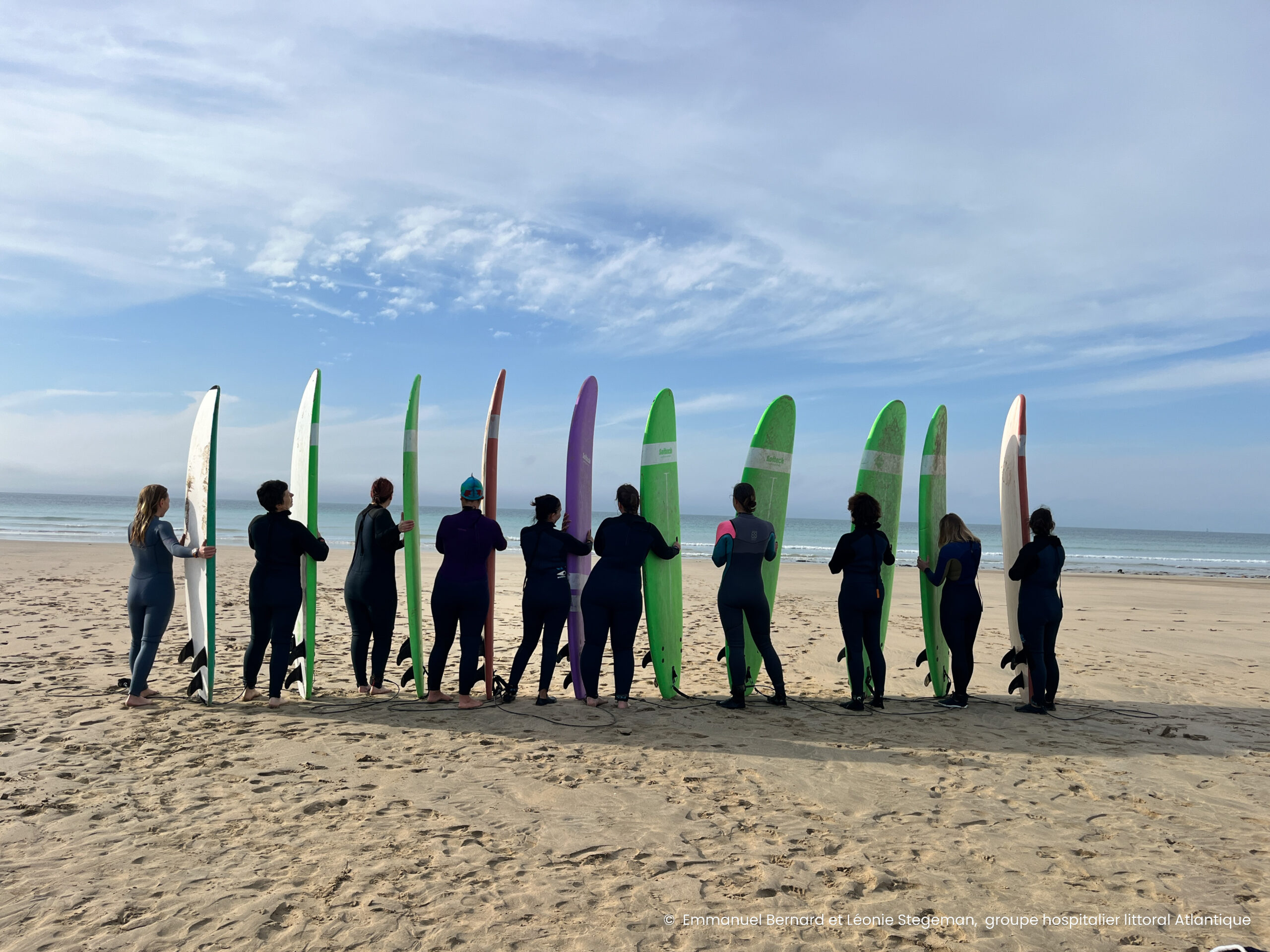 Deux sessions de huit séances hebdomadaires de surf thérapie sont organisées chaque année : l’une réservée aux femmes, l’autre à un groupe mixte. La condition sine qua none étant d’être suivi·e au CMP pour un psycho-trauma. « Ce soin complémentaire est proposé uniquement sur prescription médicale du psychiatre référent. Et chaque séance est encadrée par deux infirmières et un·e psychologue », précise Valérie Douteau. « C’est un catalyseur, ça permet de faire un bond dans la thérapie mais il est essentiel d’avoir un suivi en parallèle », relève Zoé Provot.