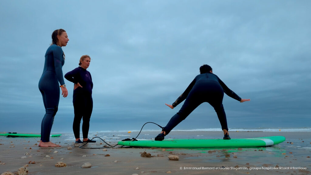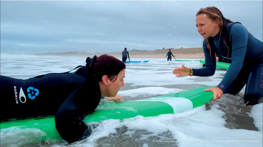 Le cadre apporte son lot de bienfaits. Pour Charlotte Delavaud-Tschan, l’océan, le vent et les vagues « sont une source d’énergie qui amènent à la pleine conscience naturelle même si cela peut être parfois intense ». « Sur la planche, on se sent en sécurité face à un élément qui est puissant. Ça nous porte », estime Anne, une patiente, dans une vidéo tournée par le service communication de l’hôpital. « Certaines ont vécu des étranglements. Mettre une combinaison, c’est déjà une première étape difficile. Une fois dans l’eau, le corps, dont certaines parties sont anesthésiées, va se remettre en mouvement petit à petit. La proprioception et la coordination se développent. Les patientes sont dans le moment présent, elles font une vraie pause dans le négatif », décrit l’infirmière. « Je sens que mon corps revient, il renaît. C’est arrivé à partir de la troisième séance », certifie Aline dans la vidéo.