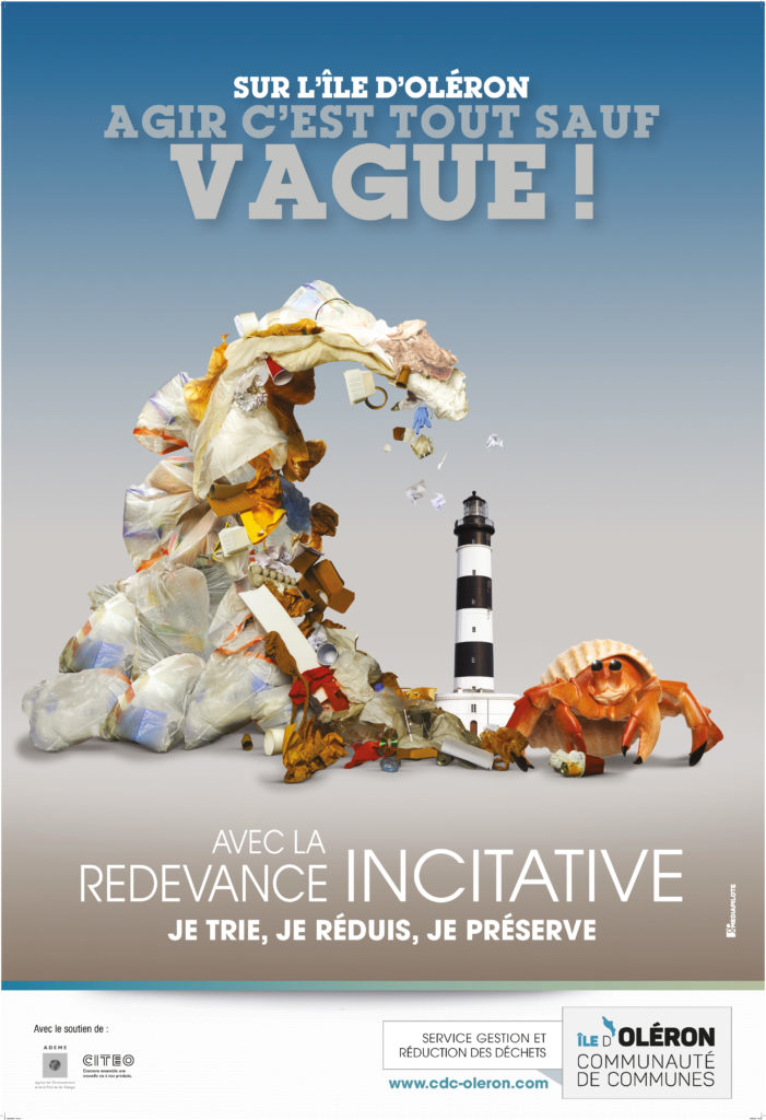 Dans l’île d’Oléron, depuis cet été, l’heure est à la communication et à la sensibilisation. Vingt-cinq agents sont sur le terrain pour rencontrer les habitants et les informer sur le fonctionnement de la tarification incitative. Ils commencent aussi à équiper les poubelles de puces qui permettront aux camions bennes de comptabiliser à l’année les levées de bacs d’ordures ménagères résiduelles (OMR) de chaque foyer. Puisque l’enjeu est bien là : inviter les habitants à réduire leur volume d’OMR. La facture variera en fonction du nombre de levées. « L’enjeu est environnemental avant tout, souligne Marie-Josée Villautreix, Vice-Présidente en charge de la gestion des déchets et du développement durable. Il faut encourager tout le monde à faire mieux, pour la maîtrise des déchets et pour payer moins. » La mise en œuvre de la tarification incitative sera effective à partir de 2022, mais dès 2021 ce sera une année blanche et chaque habitant recevra un document qui lui présentera ce qu’il aurait à payer si la tarification incitative était effective. Il pourra ainsi comparer avec sa facture actuelle. « On espère 20% de réduction des déchets, chiffre Marianne Girard, en charge du service Régie Oléron Déchets. Ces dix dernières années, nous avons déjà connu une baisse de 20%, car nous sommes déjà très engagés. Mais nous savons que nous avons encore une marge de manœuvre. » De l’autre côté du pont, dans la communauté de communes du Bassin de Marennes, la tarification incitative est entrée en vigueur dès 2015, sous la forme de redevance d’enlèvement des ordures ménagères incitative, ou REOMI (voir encadré). Le travail de communication auprès des habitants avait été initié dès 2013 et l’année test menée en 2014. Plus équitable, la facture est proportionnelle à l’utilisation réelle du service, comme l’explique Frédéric Thiebaux, responsable du pôle déchets :