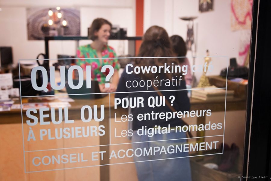 Particularité du Telescoop, ce tiers-lieu de 100 m² se situe dans un ancien magasin de chaussures d’un passage commercial reliant un quartier de la ville à la principale rue commerçante. Or au fil des années, ce “passage de la poste”, comme on l’appelle à Bressuire, est devenu quasiment désert : sur 9 boutiques 3 seulement sont encore ouvertes, plus un supermarché. “Quand j’ai décidé d’ouvrir le coworking-café à cet endroit en 2018, l’idée était de me positionner dans un territoire du centre ville plutôt sinistré” explique Christelle Feix, fondatrice du Telescoop. L’espace de travail partagé est aujourd’hui essentiellement fréquenté par des personnes ayant des activités libérales et nécessitant un lieu pour recevoir des clients, par des collaborateurs qui se trouvent sur des territoires différents et qui cherchent un endroit où se réunir. “Ce dernier cas de figure arrive régulièrement, car Bressuire se trouve à un croisement entre plusieurs villes, Nantes, Poitiers, Cholet, Niort…” souligne Christelle Feix. On y rencontre aussi des travailleurs indépendants, graphiste, webmaster, traducteur… sans espace de travail en dehors de leur domicile et qui trouvent au Telescoop “un lieu de mutualisation des savoirs, où on se donne du courage pour avancer, pour aller chercher de nouveaux clients, franchir le pas d’aller voir son banquier quand on en a besoin, toutes ces choses nécessaires au quotidien d’un entrepreneur.” Christelle Feix, qui a travaillé pendant sept ans dans l’accompagnement à la création d’entreprise, est toujours là pour apporter ses conseils aux coworkers qui développent leur activité.