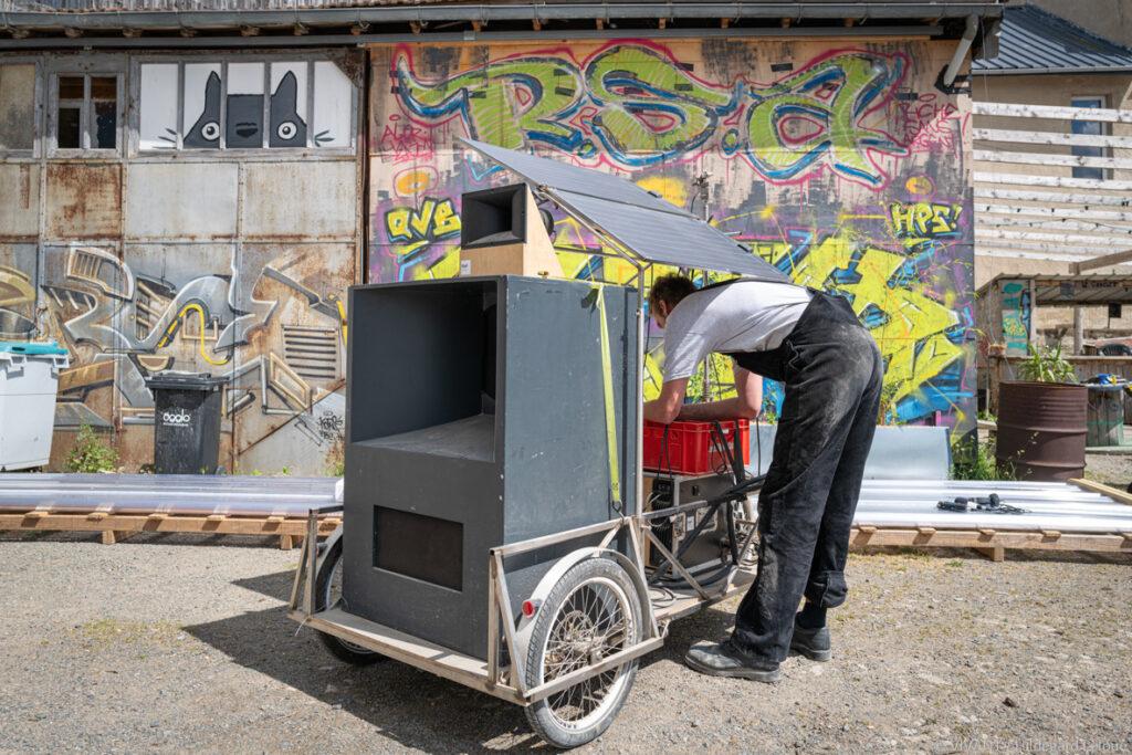 Vélo-sono, triporteur, biporteur pouvant évoluer en tandem, tricycle transformé en bibliothèque ambulante avec hamacs, vélo-scène permettant d’emporter un plateau de 4m² pour des concerts en itinérance… le champ d’exploration de la vélo-logistique n’a pour limite que celle de la créativité. Véloma a également inventé le grand vélo, « pour renouveler et choquer l’imaginaire des gens, précise Michel, co-fondateur. On se retrouve au-dessus des voitures, donc le rapport de force est inversé. On voit mieux et on est mieux vus. » L’association crée parallèlement des objets statiques : par exemple des vélos pour moudre du grain, pour faire des jus de fruit ou pour recharger des téléphones portables. Un leitmotiv : « lier à la transition énergétique la transition imaginaire”.