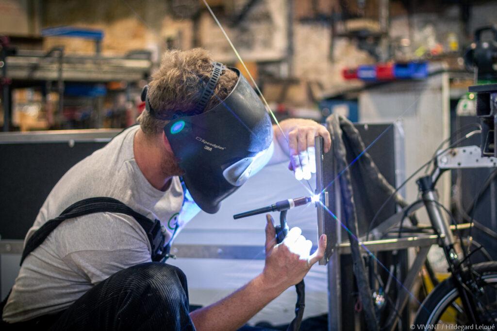 Installée à La Gob à Bressuire dans les Deux-Sèvres, Véloma est née dans un tiers-lieu à Pantin (93), la Halle Papin, « friche industrielle où des ateliers étaient disponibles et où la fabrication de vélos a pu commencer assez simplement » raconte Adrien, co-fondateur. À l’origine de l’association il y avait le désir d’autonomie et d’émancipation du capitalisme, l’envie « aussi de se marrer dans la vie, parce que c’est marrant de créer des vélos, de détourner des sens et des contre-sens. » Pourquoi le vélo comme outil d’émancipation ? « C’est un moyen de déplacement efficace, d’une grande longévité, facilement réparable et recyclable, améliorable, esthétique et léger. Il a tout pour lui. »